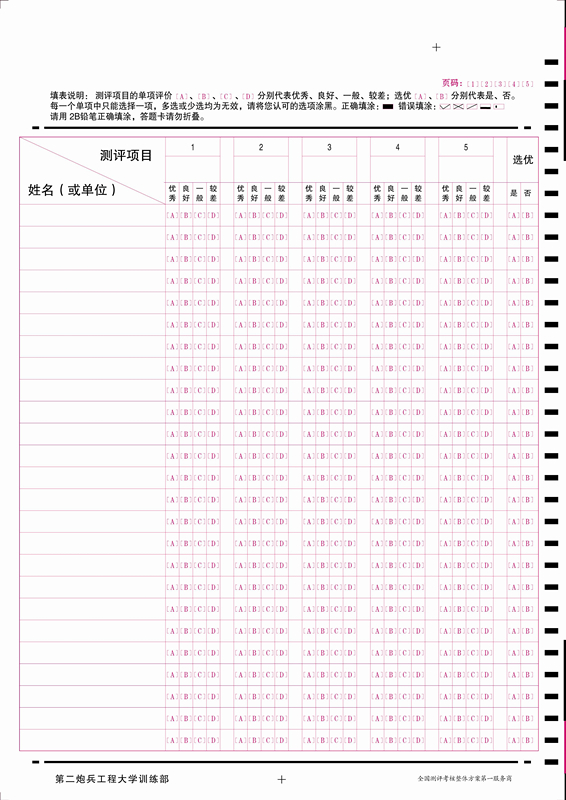 **炮兵工程大學(xué)評(píng)測表